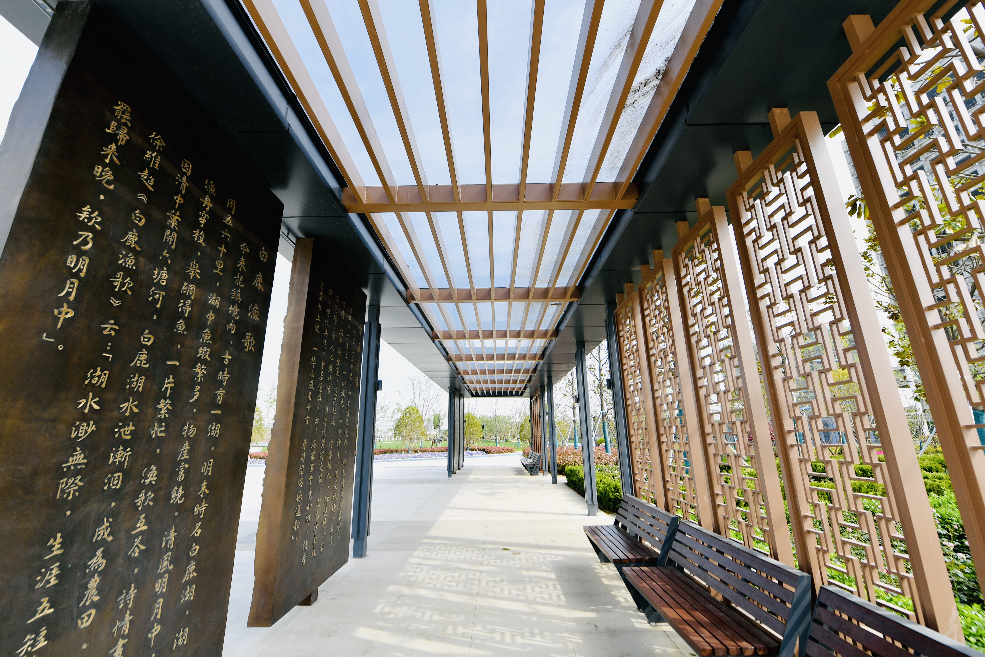 這美酒,流過八景廊架。白鹿?jié)O歌、倉基蓮唱、草埝耕云、龍泉夜雨、馬陵秋月、梅村煮雪、司吾清曉、宿預(yù)早春,走過長廊就穿越了四季,領(lǐng)略了這片土地上的風(fēng)花雪月。