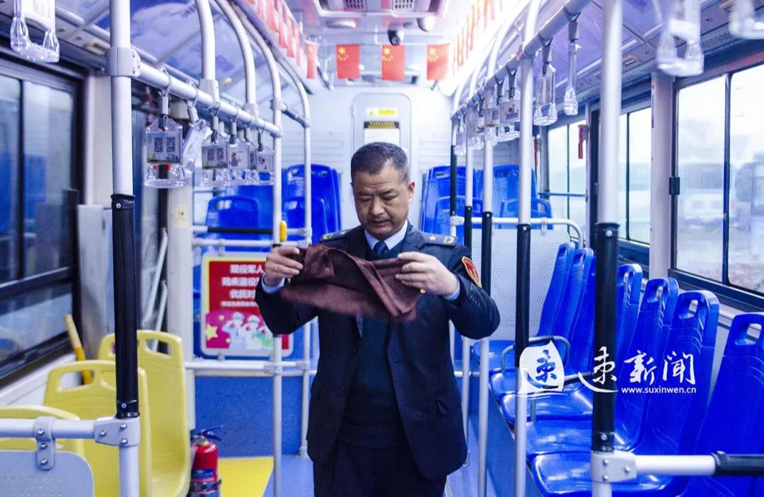 今年50歲的王守信是301路西楚清風(fēng)號公交車的駕駛員,2019年來到公交公司,每天早上5點多出門,一直工作到晚上7點左右,同樣的路一天要跑8趟,累計駕駛路程160多公里,兩年多的時間里,風(fēng)雨無阻。