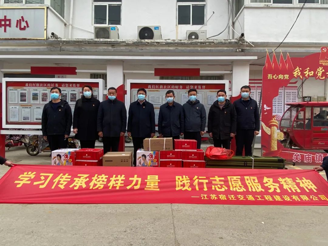 ??????? 期間,宿遷交建黨總支積極主動(dòng)對接共建社區(qū)——宿豫區(qū)關(guān)廟鎮(zhèn)紅旗社區(qū)黨支部,在該支部的統(tǒng)一安排下,黨員志愿者挺身而出、沖鋒在前,為結(jié)對社區(qū)送去1200支口罩、4箱84消毒液、10箱純凈水等防疫物資,積極幫助社區(qū)工作者開展體溫測量、物資分送等志愿服務(wù)工作,聯(lián)手筑牢疫情防控“紅色堡壘”。