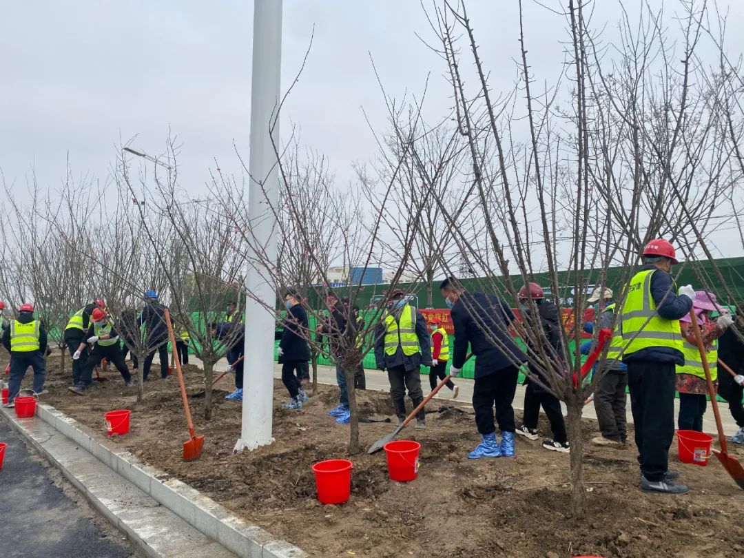 3月18日,集團(tuán)公司機(jī)關(guān)黨支部、高鐵公司黨支部、徐淮路改造工程臨時(shí)黨支部在徐淮路改造工程施工現(xiàn)場開展“志愿服務(wù)黨旗紅 項(xiàng)目一線添新綠”義務(wù)植樹活動(dòng)。