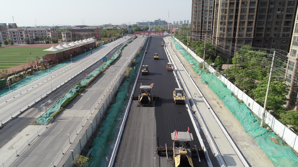 5月23日,在迎賓大道二期快速化改造工程2標段施工現(xiàn)場,攤鋪機轟鳴,建設(shè)者揮汗如雨地忙著瀝青中面層施工。