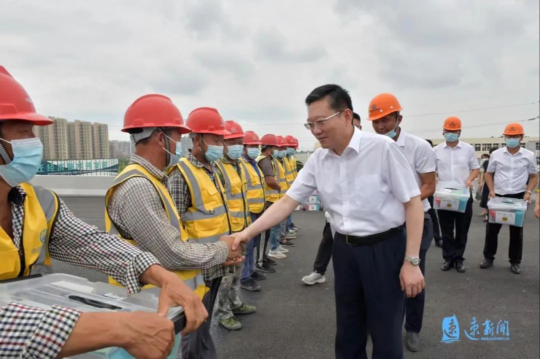 7月7日,市委副書記、統(tǒng)戰(zhàn)部部長杭海至北京路快速化改造工程建設(shè)現(xiàn)場,開展夏季安康“三送”活動,慰問一線工作者。市人大常委會副主任、市總工會主席徐勤忠參加慰問。市政協(xié)副主席、宿遷交通集團總經(jīng)理史明霞,集團黨委書記、副董事長邵巖等陪同慰問。