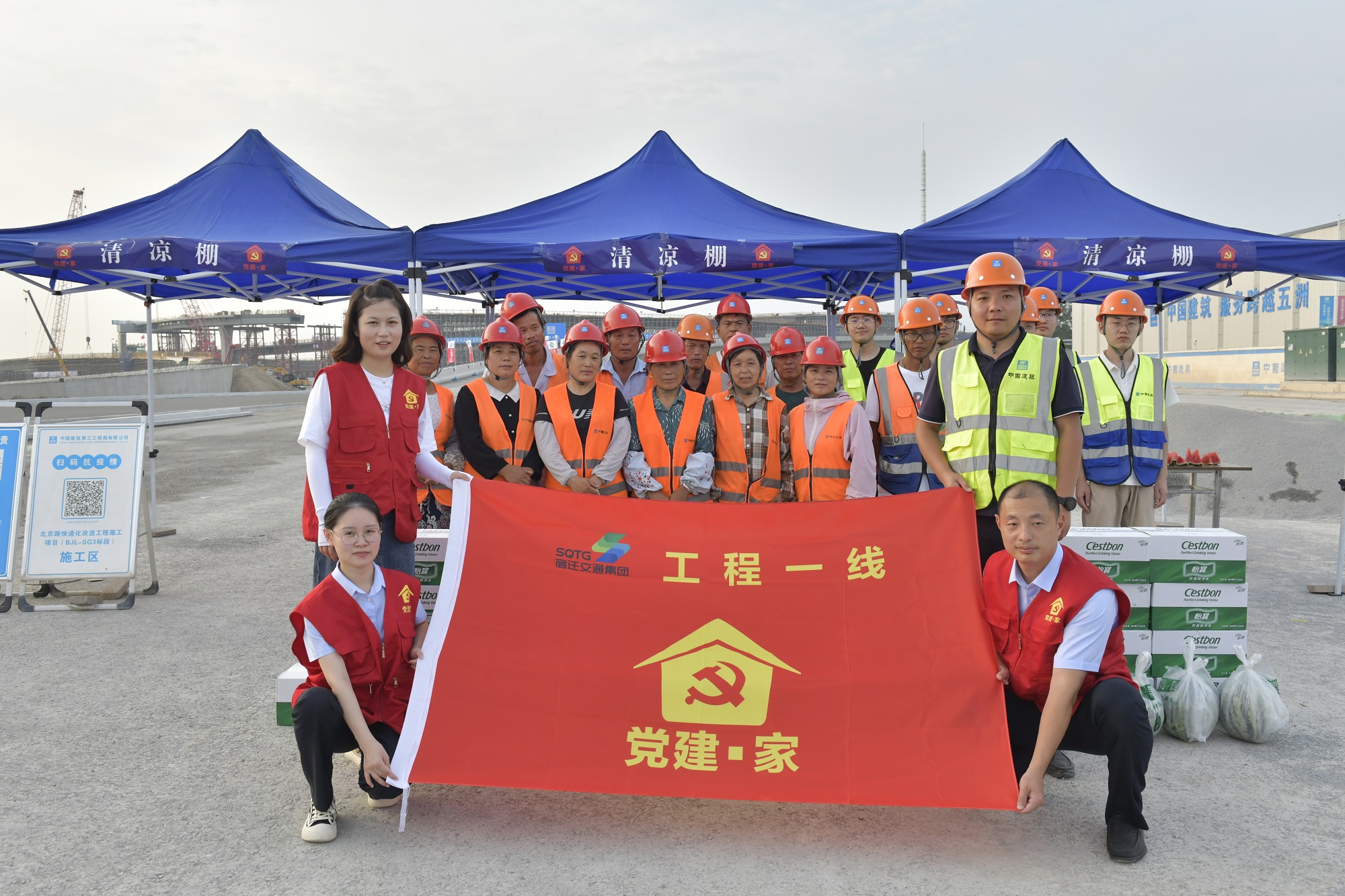 會前,黨員志愿者還到迎賓大道二期、北京路快速化改造工程建設(shè)一線“黨建·家”清涼驛站,開展“情系一線送清涼 關(guān)愛工友促安康”活動(dòng),為一線建設(shè)者送上西瓜、礦泉水、冰棍等解暑物品。