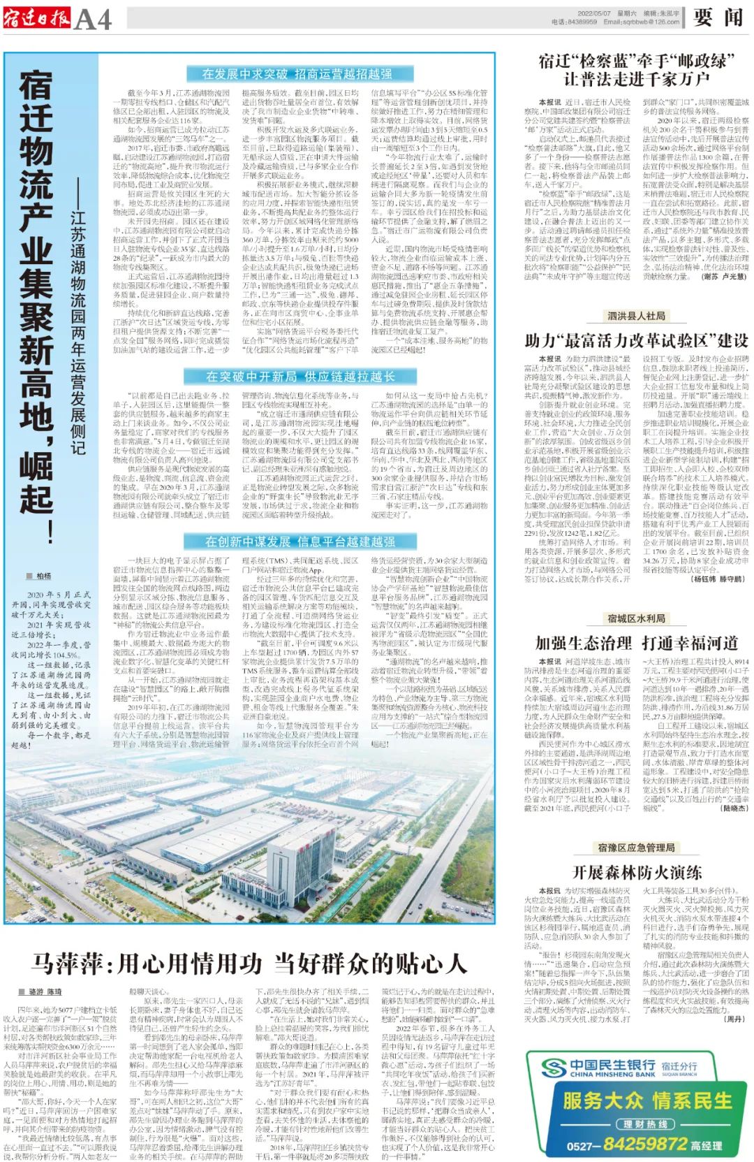 5月7日,宿遷日報(bào)以《宿遷物流產(chǎn)業(yè)集聚新高地,崛起!——江蘇通湖物流園運(yùn)營兩年發(fā)展側(cè)記》為題,展現(xiàn)了通湖物流園運(yùn)營兩年以來由無到有、由小到大、由弱到強(qiáng)的完美嬗變。