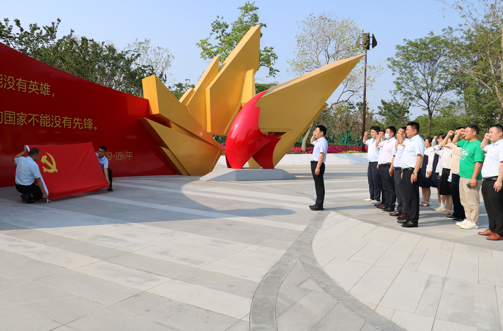 活動(dòng)期間,支部黨員滿懷對(duì)革命先烈的敬意,來(lái)到宿遷“英雄園”,瞻仰英雄塑像,回顧烈士們不忘初心、舍身忘我的英雄事跡。“英雄園”廣場(chǎng)上,支部書記帶領(lǐng)大家整齊列隊(duì)、高舉右拳,在鮮紅的黨旗下,重溫入黨誓詞。