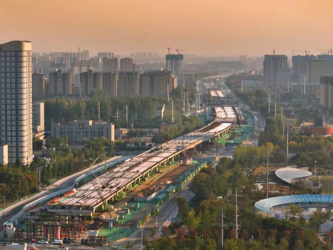 北京路快速化改造工程累計完成預(yù)制板梁架設(shè)100%、防撞護欄99.7%、橋面鋪裝100%、伸縮縫45.3%、路基填方99.7%、雨污水管道99.7%、水穩(wěn)攤鋪95.2%、瀝青攤鋪56.6%、路緣石90.9%、人行道鋪裝84.6%、標牌安裝40.6%、路燈46.6%、喬灌木24.6%、地被12.7%。