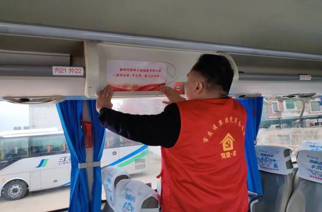 學習會上,全體人員集體觀看《領(lǐng)航:踔厲奮發(fā)》視頻,學習《習近平:為實現(xiàn)黨的二十大提出的目標任務(wù)而團結(jié)奮斗》等文件精神。會后,組織黨員在車內(nèi)張貼黨的二十大精神主題標語,“新時代的偉大成就是黨和人民一道拼出來、干出來、奮斗出來”等金句在車內(nèi)熠熠生輝,將深入學習宣傳貫徹黨的二十大精神以直觀、新穎的方式融入旅客出行環(huán)境中,把長途汽車打造為宣傳黨的二十大精神的流動課堂。