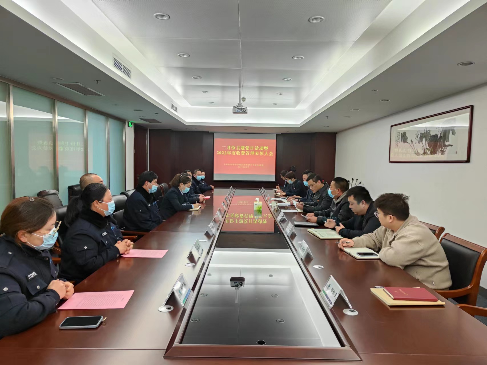 2月20日,停車場公司黨支部組織召開2月主題黨日活動暨2022年度收費管理表彰大會。
