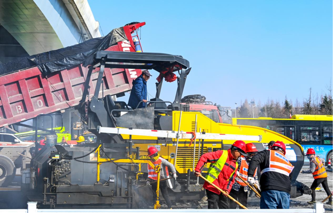 2月13日,青海湖路路口順利完成瀝青下面層施工;