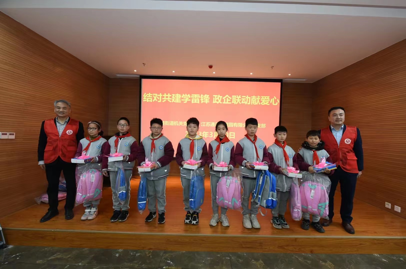 活動中,支部組織全體黨員重溫入黨誓詞、重憶入黨初心,接受心靈的凈化和洗禮。隨后,走進“紅色影院”,共同觀看《向雷鋒同志學習》視頻,“身臨其境”感悟雷鋒精神。觀影結(jié)束后,通湖物流園黨支部與古楚街道機關(guān)黨支部黨員共同為轄區(qū)青少年代表贈送學習用品,并與他們一起走進科普活動室、舞龍展廳,探索科學知識,領(lǐng)略非物質(zhì)文化遺產(chǎn)的魅力。