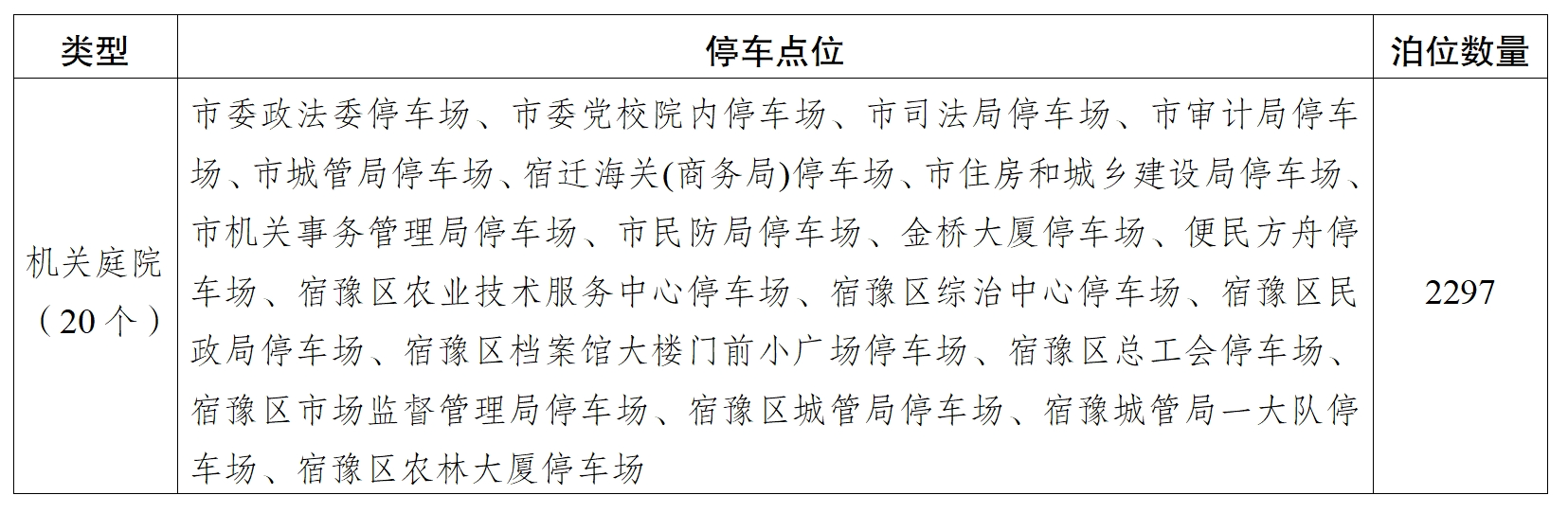 涉及20個機關(guān)庭院、2297個停車泊位