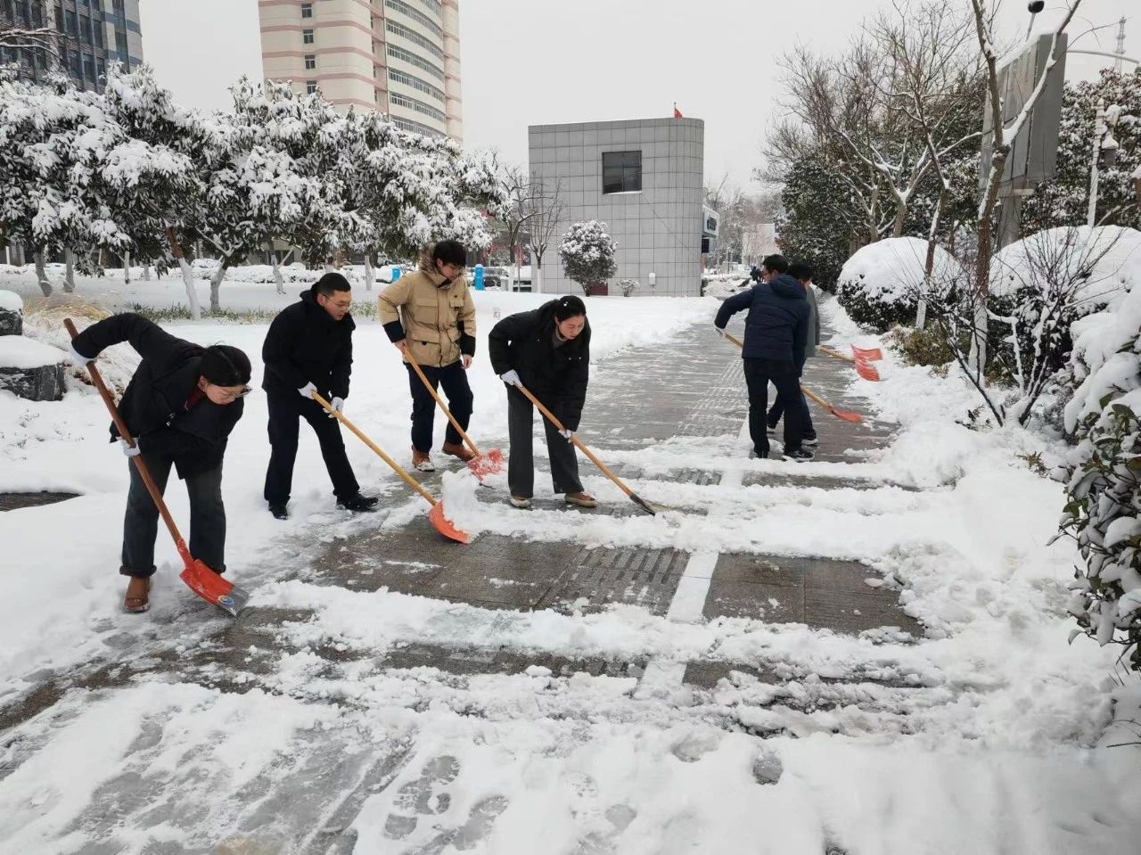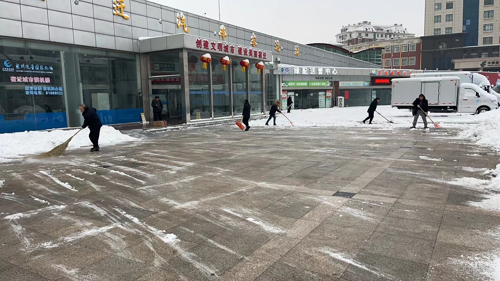 東樞紐公司組織全體干部職工高效有序開(kāi)展掃雪除冰工作。對(duì)電子商務(wù)園區(qū)東樞紐公司辦公大樓周邊及主要通行路段進(jìn)行清掃;對(duì)東樞紐建設(shè)者之家,緊急聯(lián)動(dòng)各租賃單位進(jìn)行掃雪除冰工作,有效保障相關(guān)單位正常工作運(yùn)轉(zhuǎn)。