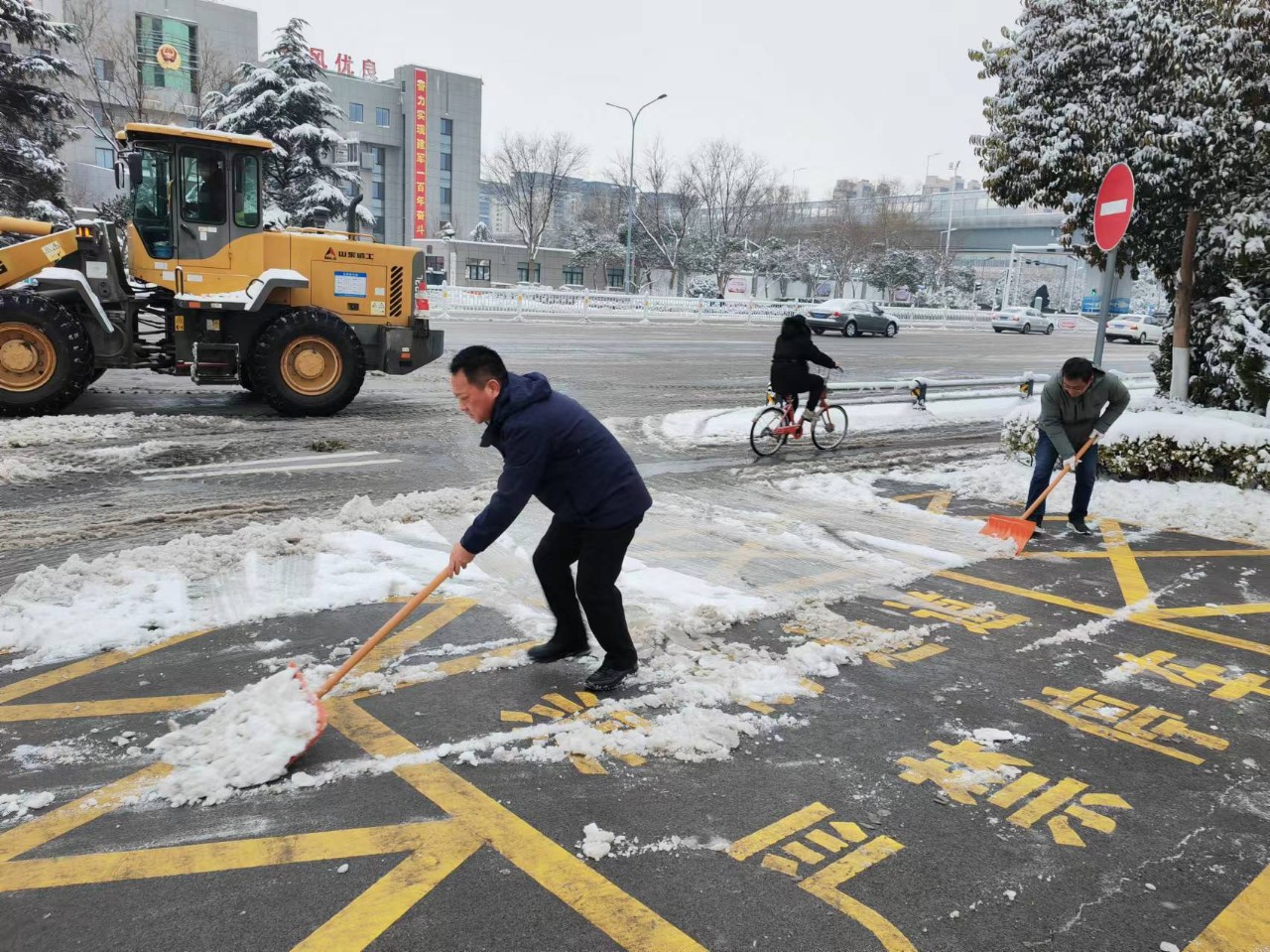 集團(tuán)公司聞雪而動(dòng)、雪停為令,組織全體干部職工5日上午6:50集合到位,出動(dòng)裝載機(jī)1輛,全力對(duì)責(zé)任路段洪澤湖路北幅(迎賓大道至法苑西巷段)進(jìn)行除雪保暢工作。為更好的開(kāi)展工作,本次除雪采用劃區(qū)域、劃部門(mén)的辦法,使除雪時(shí)間大為縮短,有力保障市民出行。
