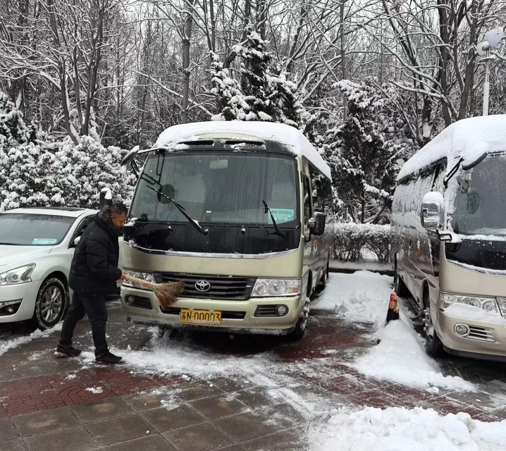 恒通租賃(公車(chē)調(diào)度中心)啟動(dòng)特殊天氣下車(chē)輛運(yùn)行應(yīng)急預(yù)案,組織30余名工作人員,對(duì)黨政辦公大樓院內(nèi)開(kāi)展掃雪除冰工作,清理保障車(chē)輛積雪,檢查車(chē)輛工況,對(duì)駕駛員進(jìn)行安全提醒,全力做好雨雪冰凍天氣市級(jí)機(jī)關(guān)安全出行服務(wù)保障工作。