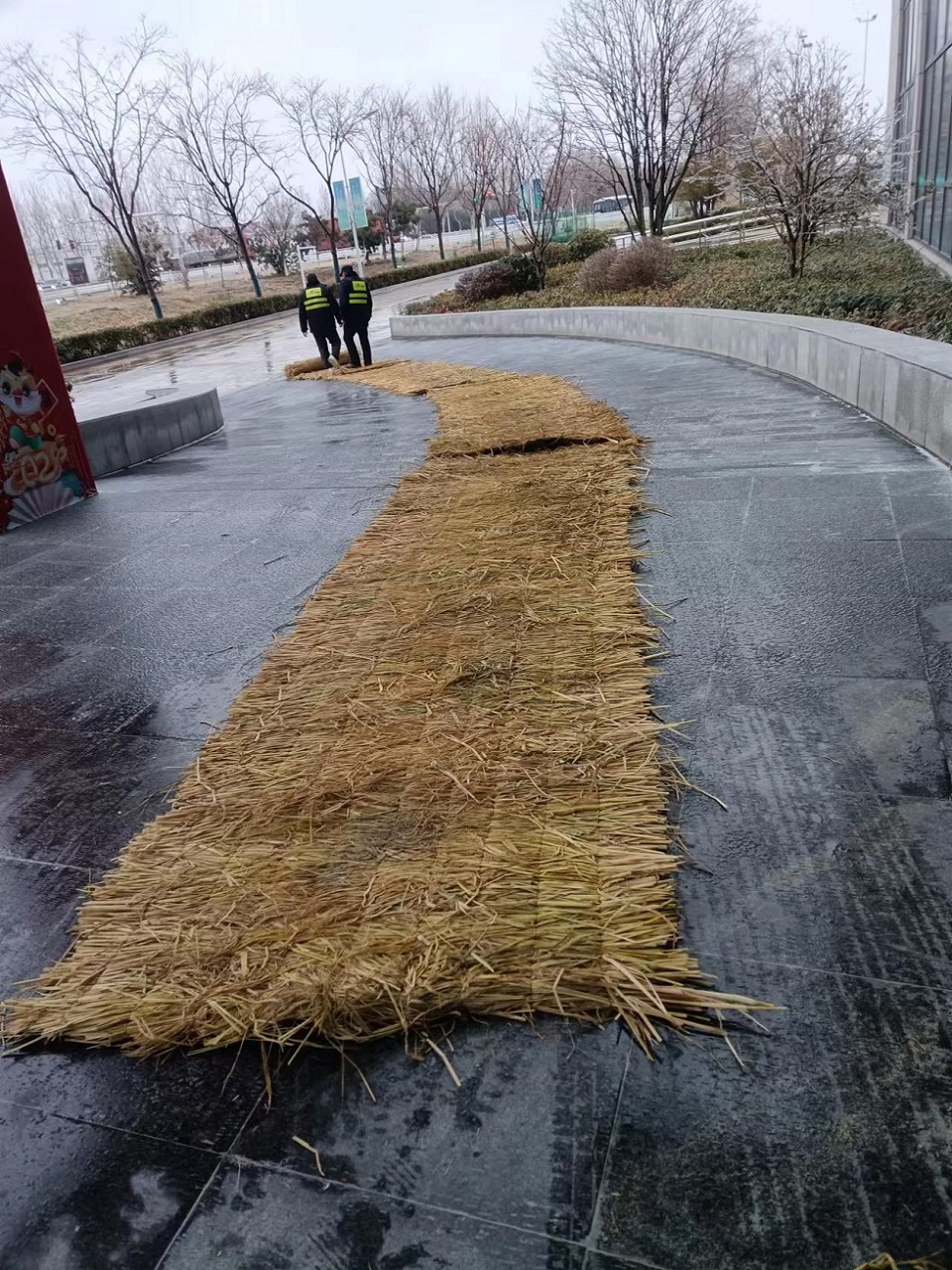 通湖物流園提前儲(chǔ)備防滑材料、融雪劑等應(yīng)急物資,在園區(qū)入口、坡道等重點(diǎn)路段鋪設(shè)防滑草墊,防止出現(xiàn)事故;做好園區(qū)內(nèi)物流企業(yè)安全宣教工作,督促企業(yè)提醒貨運(yùn)司機(jī)注意應(yīng)對(duì)嚴(yán)寒冰凍天氣,確保行車(chē)安全。