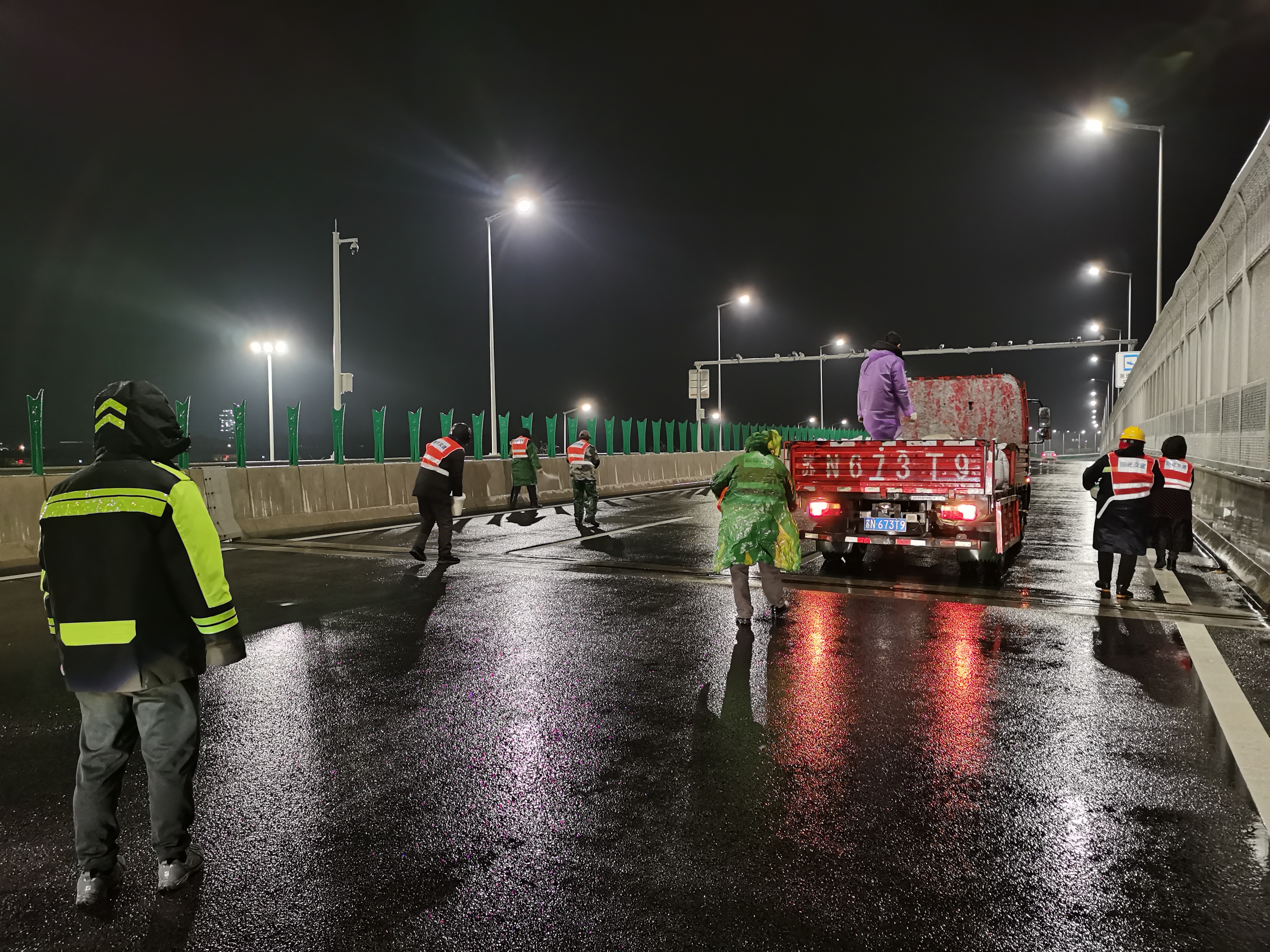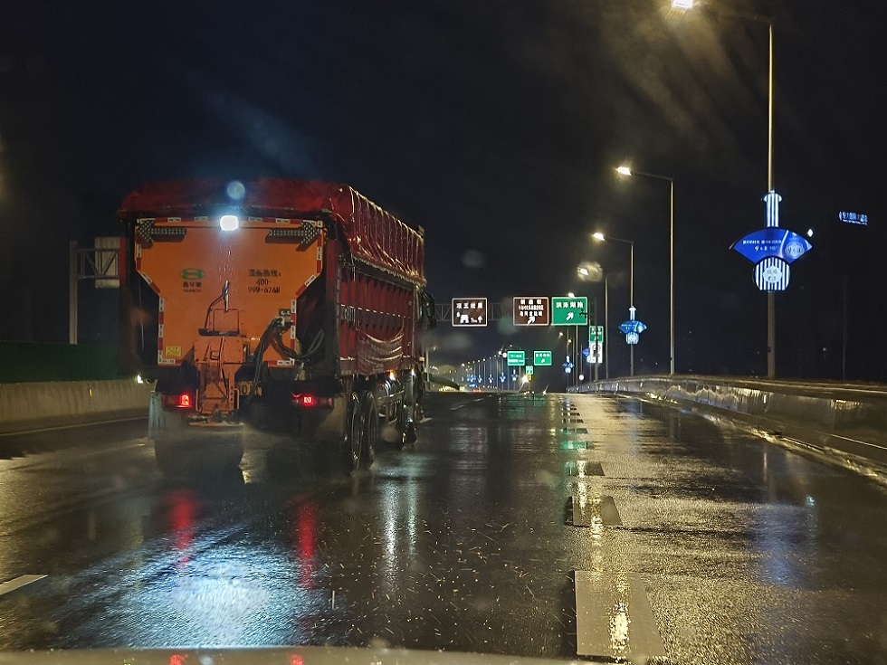 宿遷交建立即啟動(dòng)雨雪冰凍天氣應(yīng)急預(yù)案,出動(dòng)機(jī)械70余輛、人員180人。針對(duì)管養(yǎng)道路不同路況特點(diǎn)制定對(duì)應(yīng)處置方案,第一時(shí)間對(duì)主要路段進(jìn)行預(yù)防性融冰撒布處置,對(duì)結(jié)冰路段啟用熱水噴灑和滾雪涮跟掃、人工輔助散鹽的措施,積極組織人員對(duì)道路進(jìn)行破冰除障,確保車(chē)輛進(jìn)出安全。同時(shí),對(duì)道路標(biāo)志、路燈等設(shè)施進(jìn)行檢修和維護(hù),提高夜間行車(chē)可見(jiàn)性和安全性。