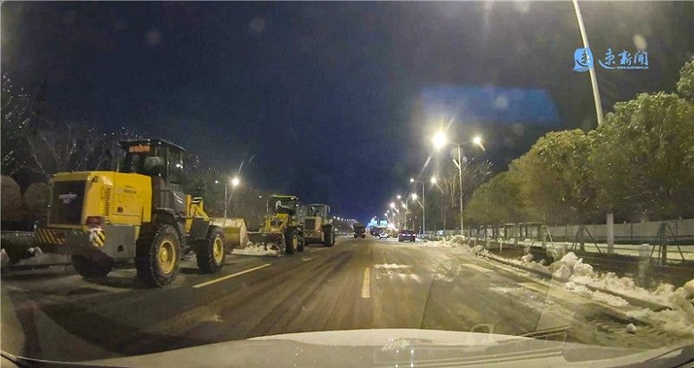 據(jù)邱女士回憶,凌晨的天空仍是一片漆黑,但快速路上卻燈火通明,沿途不時可以看到正在清理道路積冰的工作人員和施工車輛。當(dāng)時快速路不同路段已經(jīng)開辟出了1到2條車道供車輛正常行駛。
