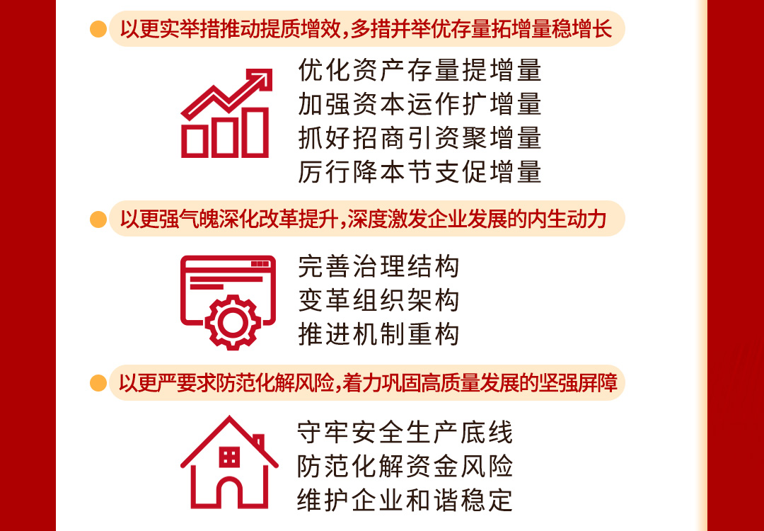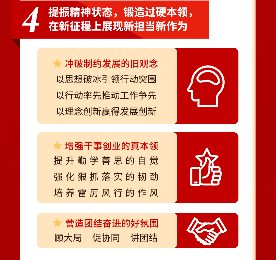 會議要求,各單位、各部門要提高站位、深化認識,以“凝心聚力”的共識抓落實,聚焦重點、攻堅突破,以“抓鐵有痕”的韌勁抓落實,黨建引領、強基固本,以“從嚴從實”的作風抓落實,為改革發(fā)展提供堅強組織保證。
