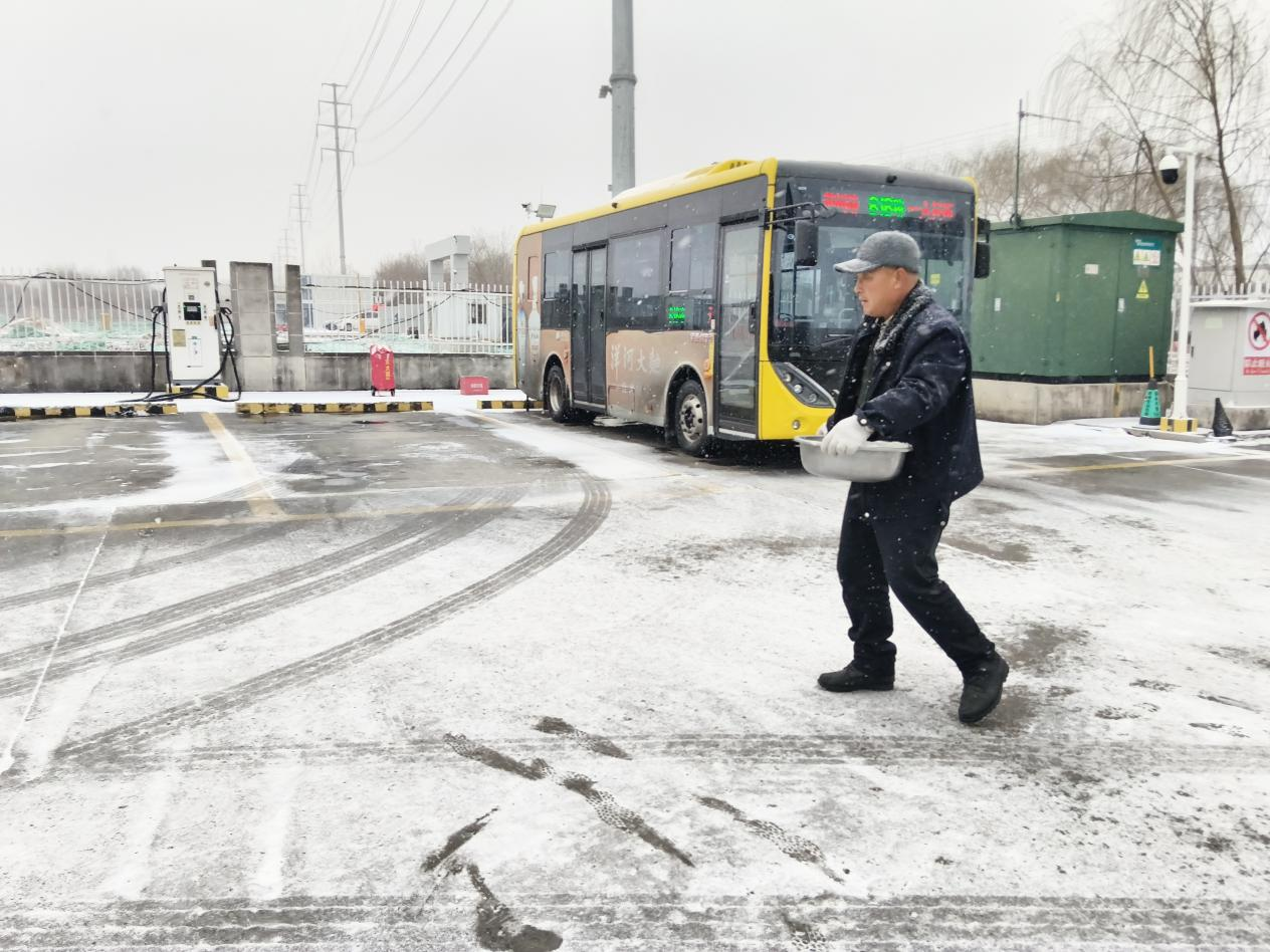 公交公司各場站后勤人員手持鐵鍬、掃帚,對(duì)場站出入口、車輛通道等重點(diǎn)區(qū)域進(jìn)行除雪作業(yè);駕駛員們也利用發(fā)車間隙,清理車輛周邊積雪與薄冰,確保公交安全準(zhǔn)點(diǎn)駛出,保障市民在雪天也能坐上放心車。