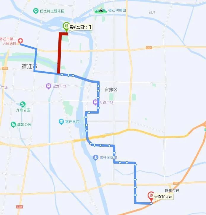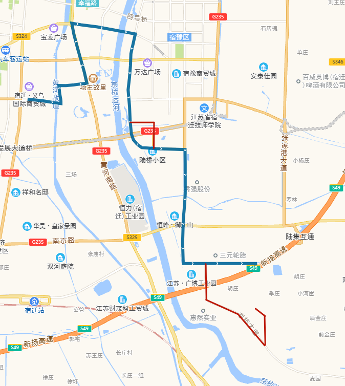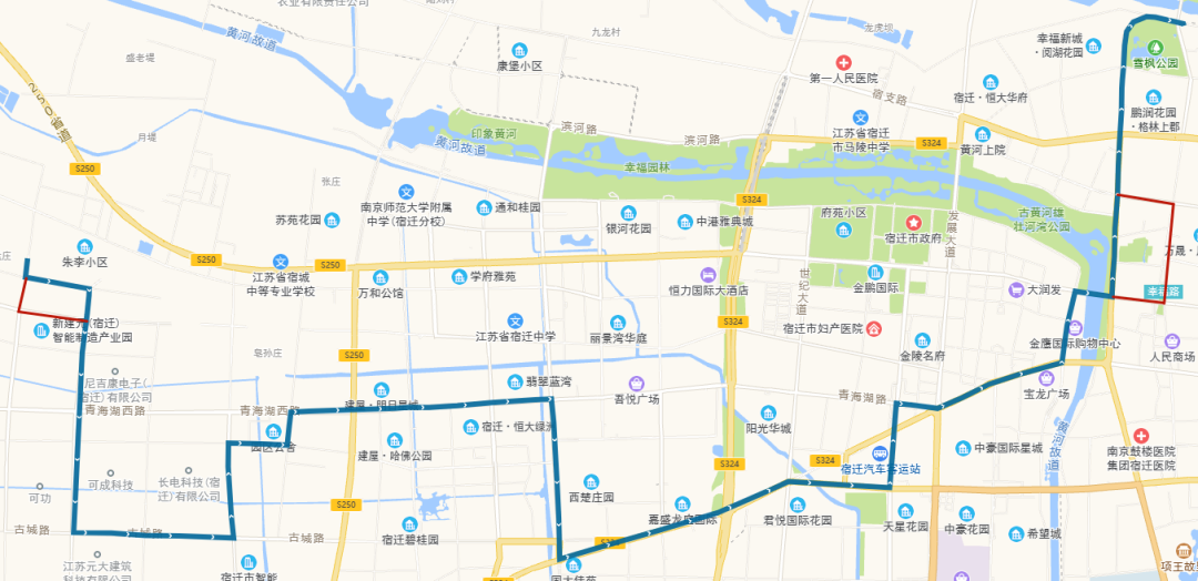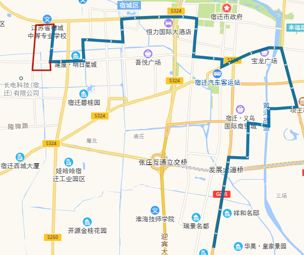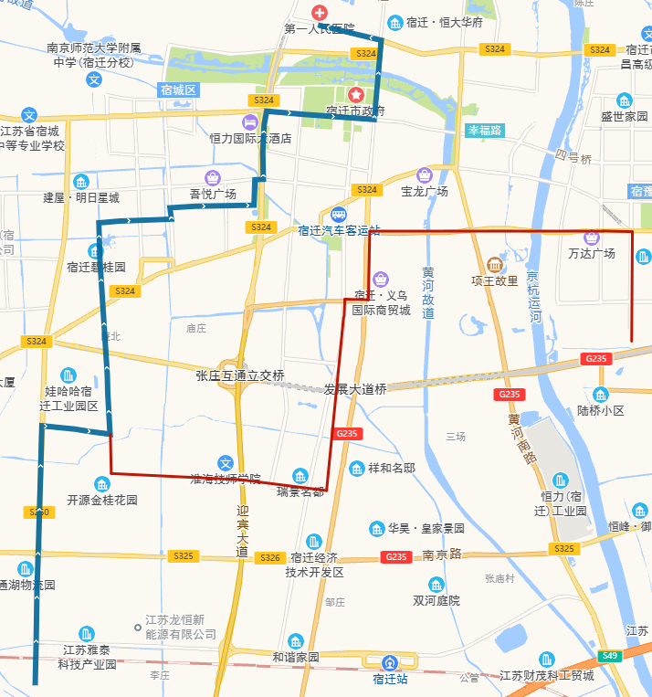 (五)802路。將現(xiàn)通湖大道—姑蘇路—通達(dá)大道—蘇州路—人民大道—廈門路—發(fā)展大道—項(xiàng)王路—項(xiàng)王東路—珠江路—珠江路公交首末站路段,優(yōu)化為通湖大道—金雞湖路—通達(dá)大道—玄武湖西路—振興大道—吉林路—渤海路—青海湖西路—迎賓大道—洪澤湖路—發(fā)展大道—宿支路—市第一人民醫(yī)院公交首末站。