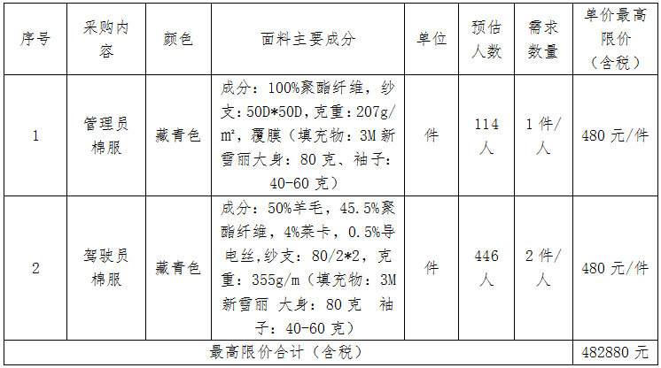 (一)項目名稱:宿遷市公交運營服務(wù)有限公司職工冬季服裝采購項目