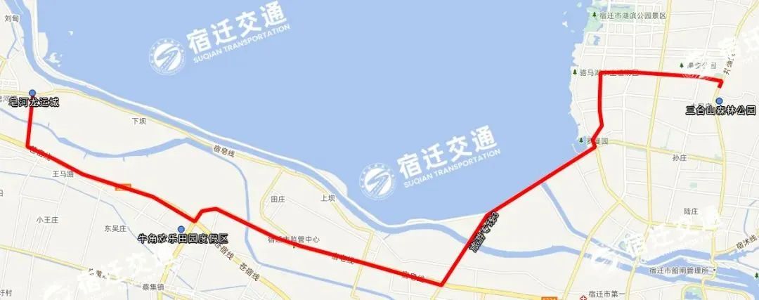 3、“射線2”:旅游專線3(三臺山森林公園—皂河龍運城),途經(jīng)路線:三臺山森林公園—新站路—迎春大道—環(huán)湖大道—通湖大道—宿遷大道—324省道—牛角歡樂田園度假區(qū)—324省道—250省道—龍運大道—皂河龍運城。停靠站點:三臺山森林公園—牛角歡樂田園度假區(qū)—皂河龍運城。線路里程27公里,車輛和班次安排:每天8:00、9:00、10:00、11:00、14:00、15:00、16:00發(fā)班,計劃投入4輛車。
