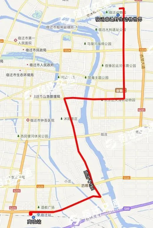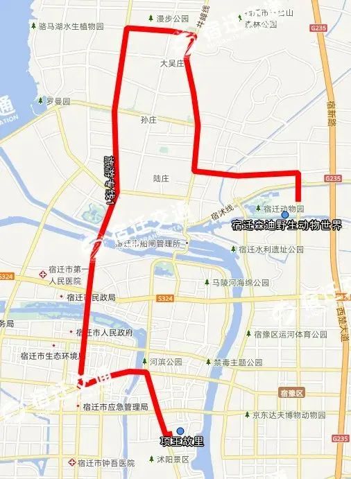 2、延伸111路(原停在尚陽城路邊)和308路(原停在紅星凱盛),沿江山大道進(jìn)入宿遷森迪野生動物世界。