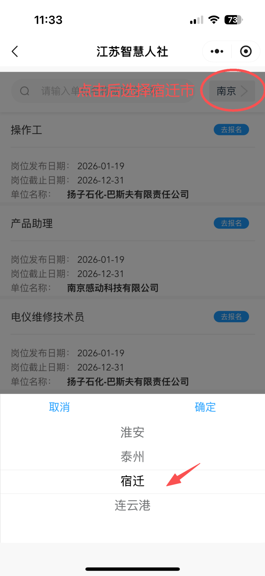 搜索微信小程序:江蘇智慧人社、按照下圖所示步驟操作報名