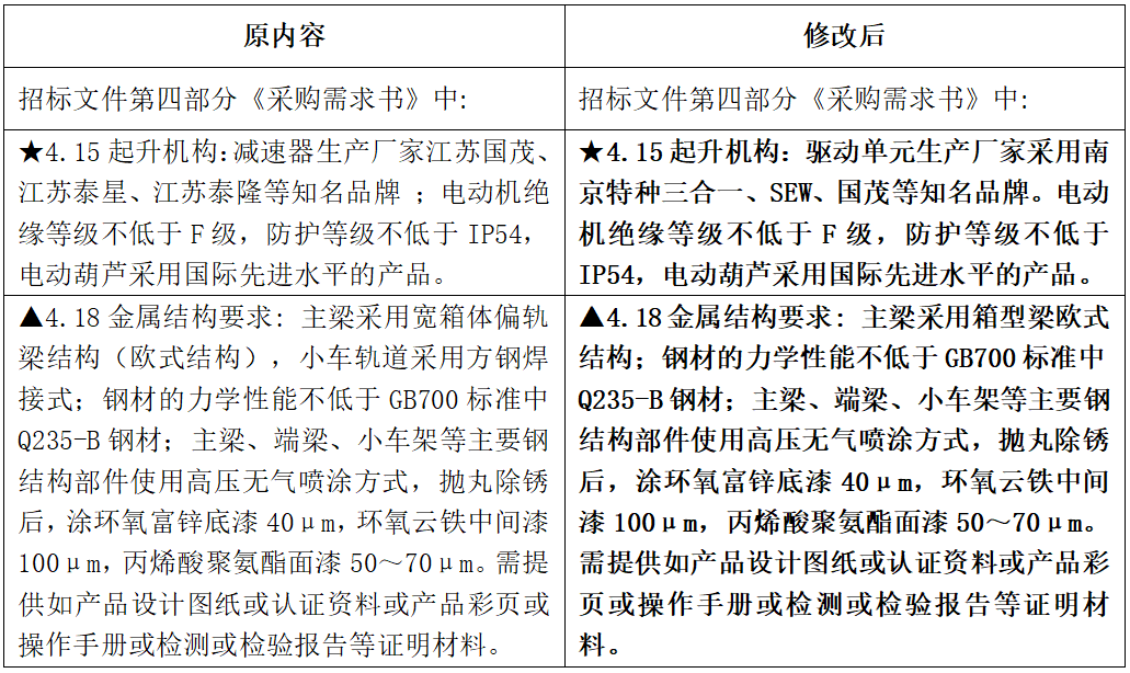 通泰建材歐式單梁橋式起重機(jī)設(shè)備采購項目澄清公告
